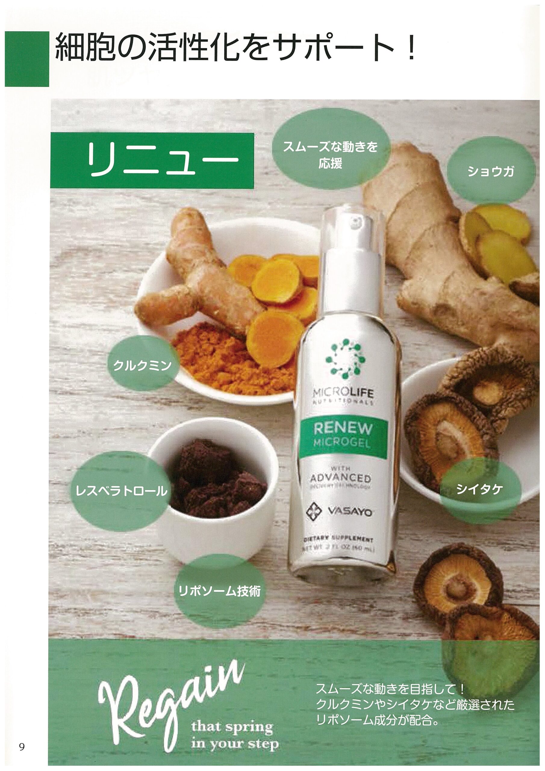細胞の活性化をサポート! スムーズな動きを目指して!クルクミンやシイタケなど厳選されたリポソーム成分が配合。 体の「再生」をサポートし、関節の健康状態の改善と全体的な健康状態の改善をサポートする。 【補足説明】細胞の修復...